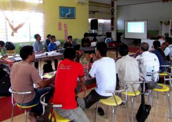 Investasi Pengetahuan Bagi Pokdarwis PrailenguSenin, Maret 27, 2017 - 10:37 Siang itu penunjuk suhu di handphone menunjuk angka 31 derajat, namun udara panas itu tidak menyurutkan niat sekelompok laki-laki dan perempuan untuk mengerjakan tugas yang diberikan oleh fasilitator. Mereka berdiri membentuk lingkaran dan mulai mengedarkan sebuah bola kasti dengan kecepatan yang sudah ditentukan, ketika bola diedarkan setiap peserta wajib memperkenalkan namanya lalu berterima kasih serta melemparkan bola pada orang di depannya sambil menyebut nama orang tersebut. |